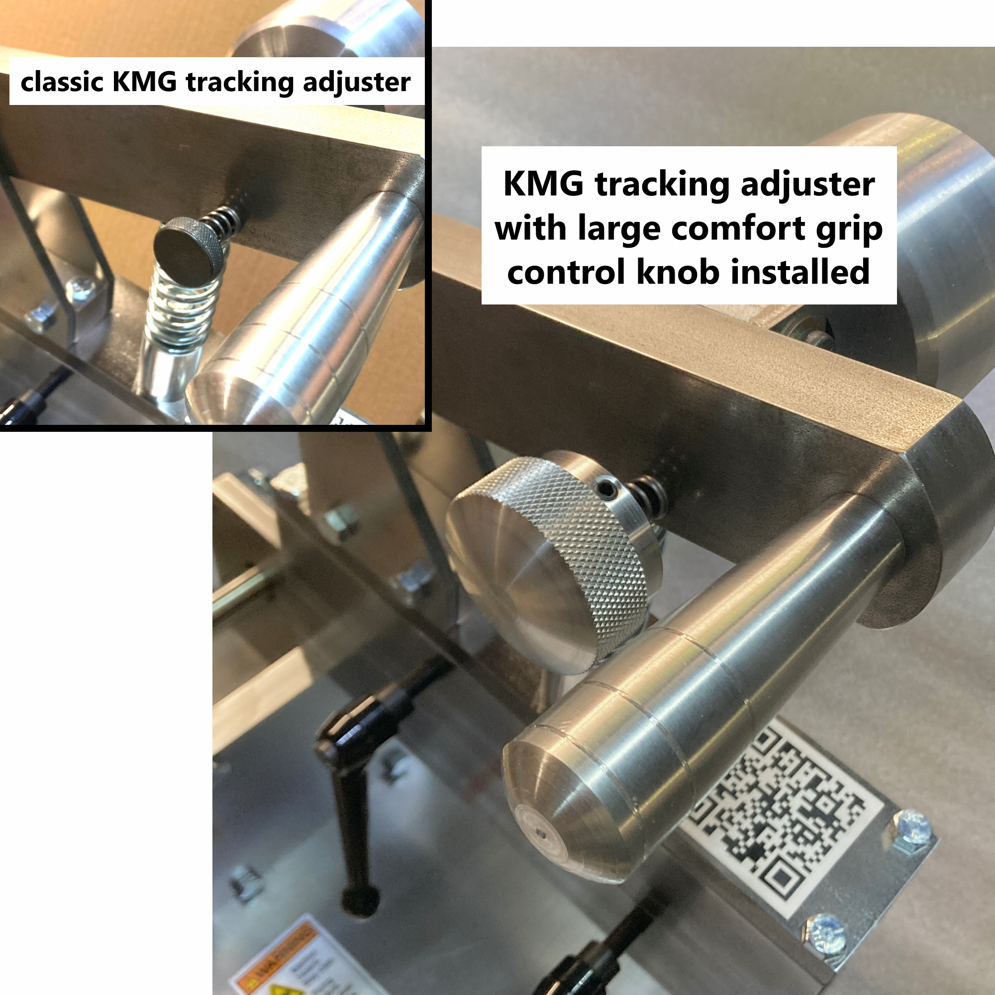 - designed to install onto existing 1″ diameter tracking adjuster screw of classic KMG and EF-48 belt grinders