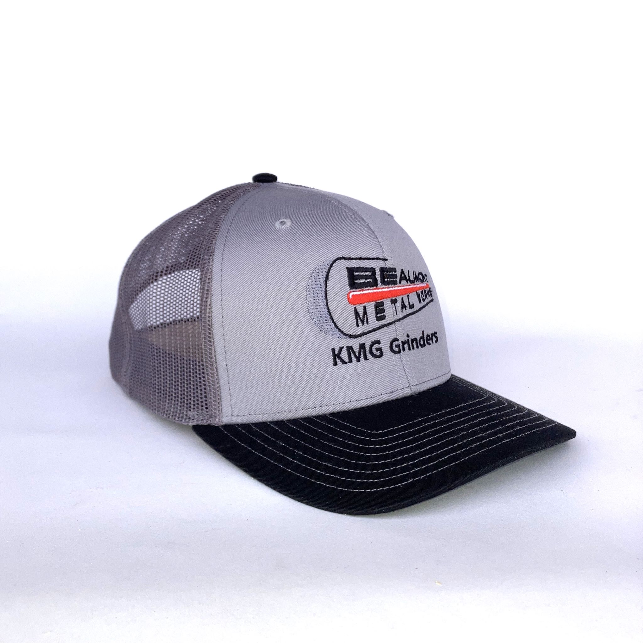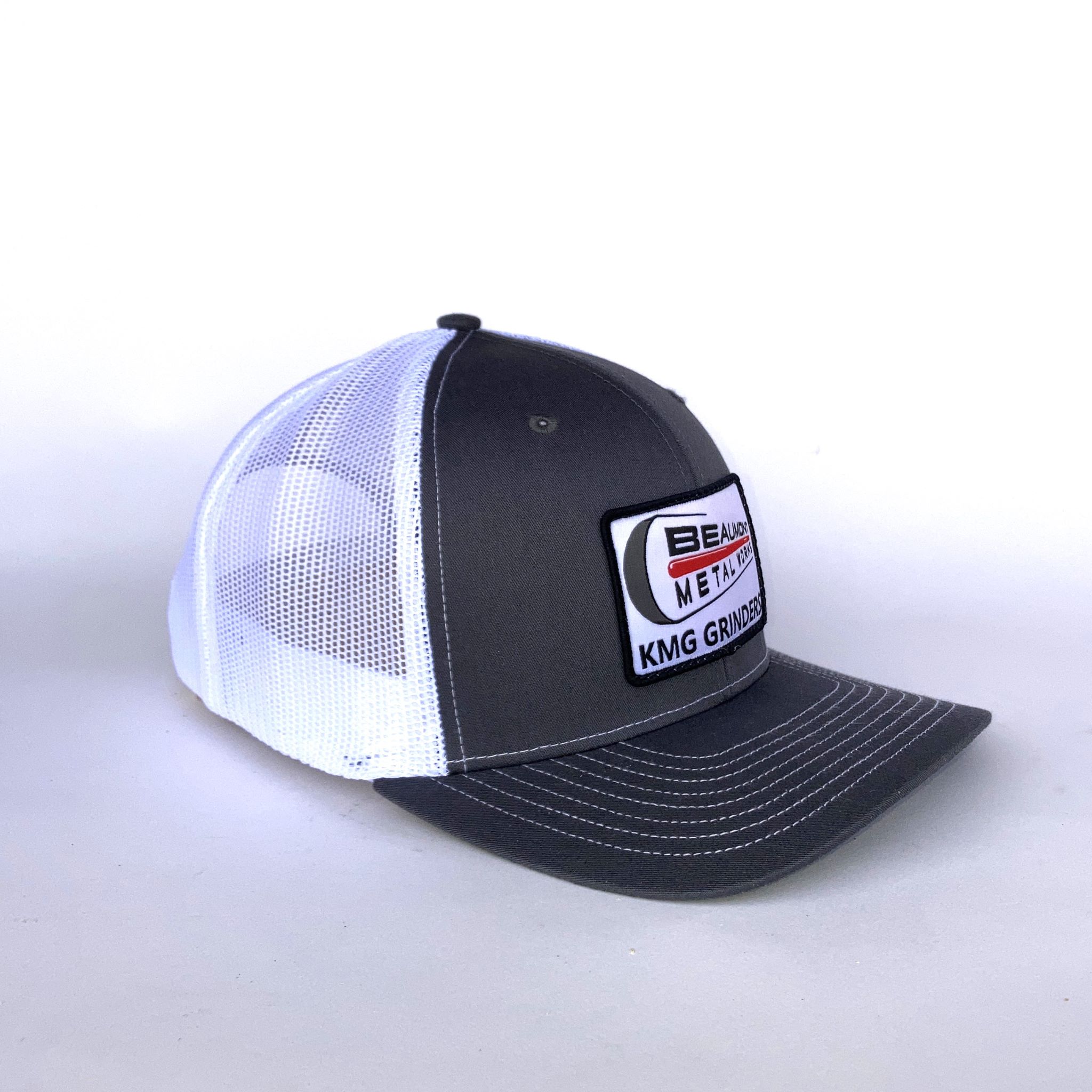 Beaumont Metal Works custom merch available in either embroidered or woven patch logo on adjustable, snapback Richardson 112 Trucker hats.